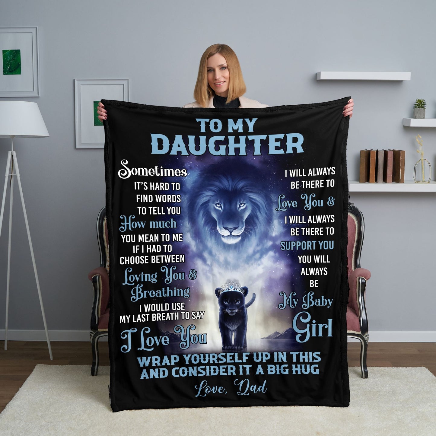 The perfect gift to remind your daughter how much you love her. This blanket is great for snuggling while watching tv or staying warm while reading a book.