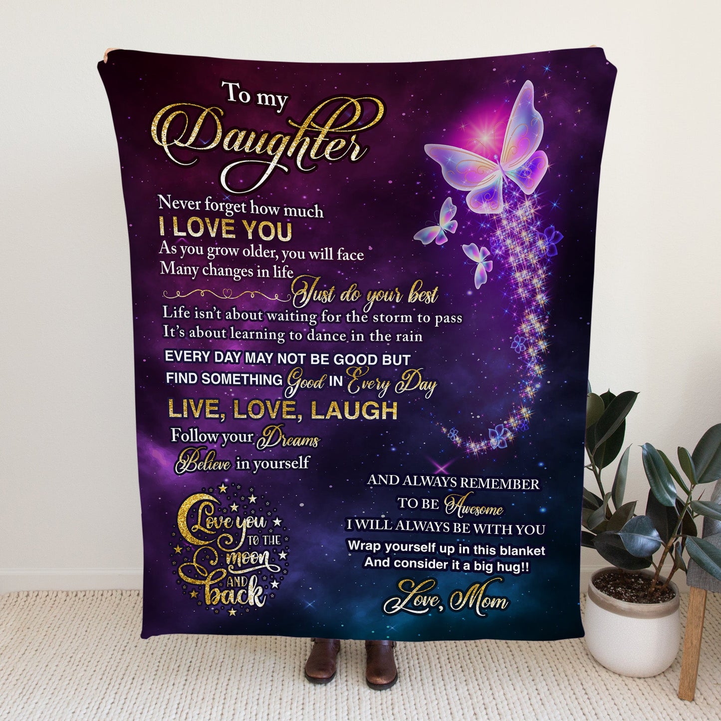 The perfect blanket to remind your daughter to find something good in every day: Live, Love, and Laugh. - Perfect Birthday Gift, Christmas Gift, Graduation Gift, College Student Gift, etc.