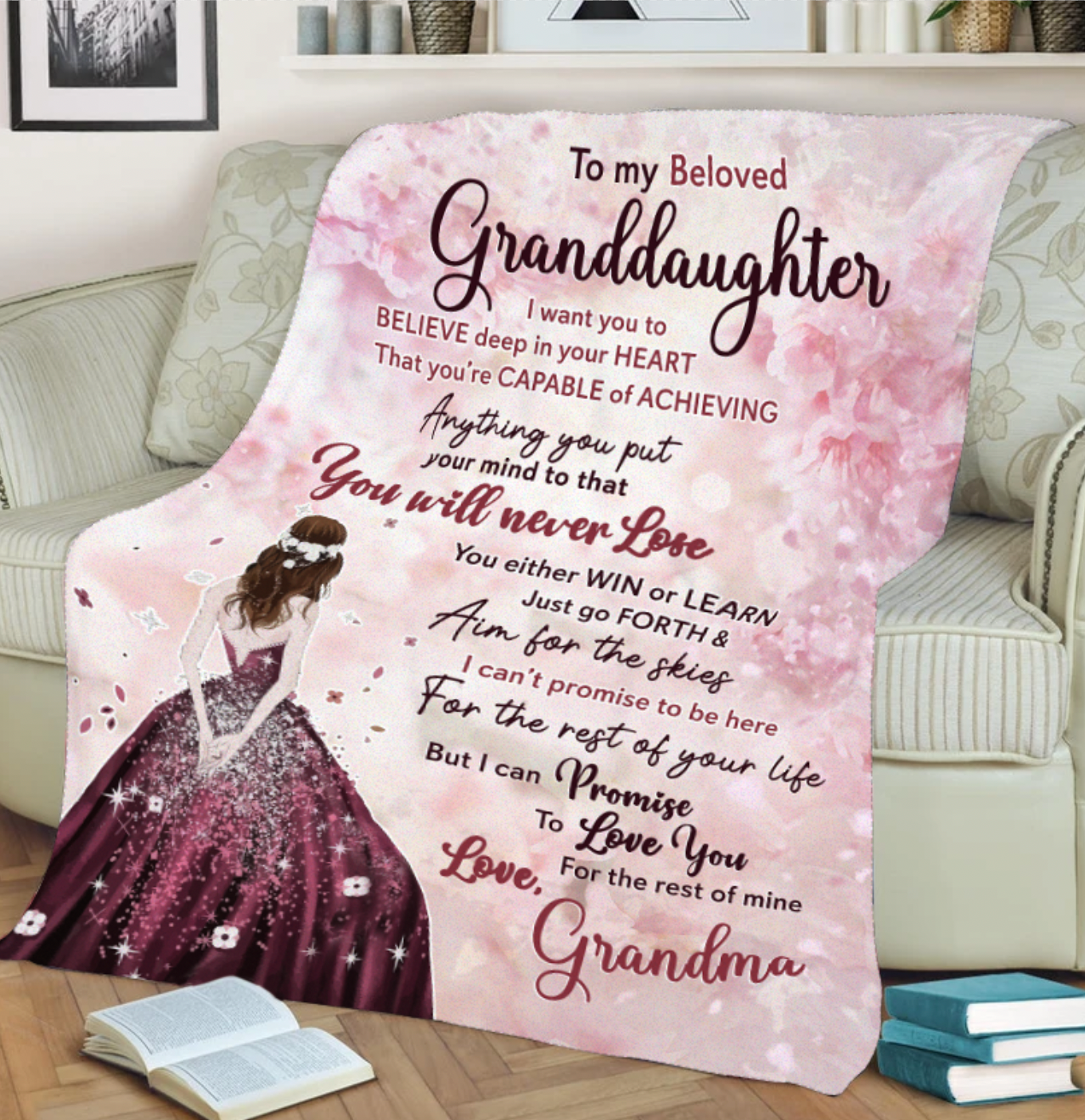 The perfect blanket to remind your granddaughter that in every experience, she will either Win or Learn but never lose. And equally important, you believe in her, and she is capable of achieving anything. - Birthday Gift, Graduation Gift, College Student Gift, Christmas Gift, etc.