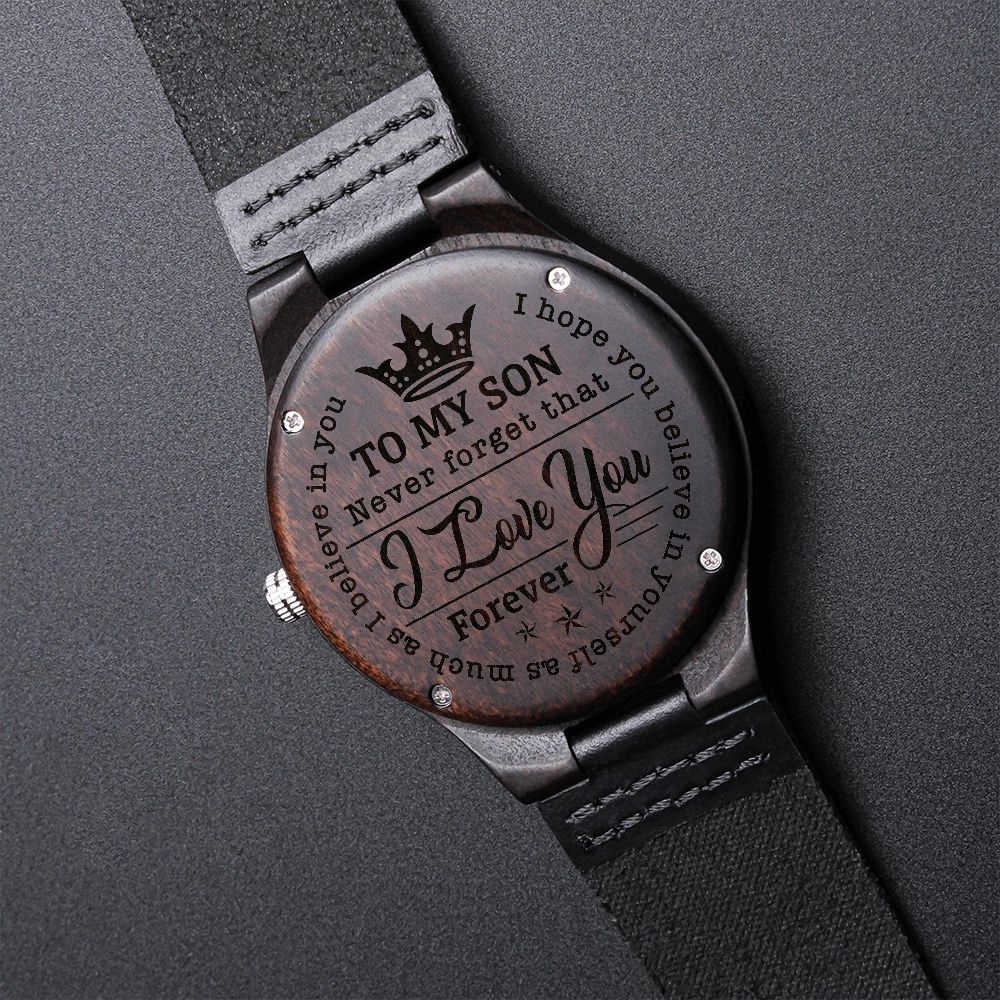 To My Son | Never Forget That I Love You | Engraved Wooden Watch