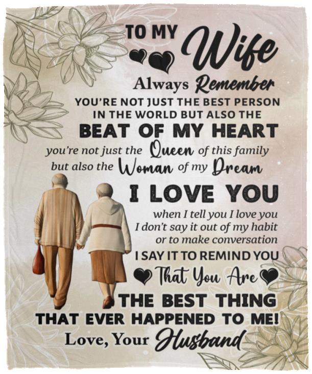 Imagine your wife's reaction when she receives this beautiful blanket with a heartfelt message. As she snuggles and watches TV or reads a book, she will be reminded of how special she is to you. She will love and cherish this gift.